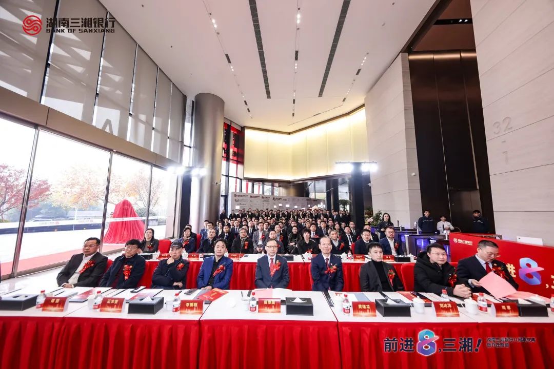 2024年12月26日,三湘银行举行八周年庆典暨乔迁新禧仪式。银行股东代表、董监事、全体高管及员工代表欢聚一堂,共襄盛举,庆祝并见证了这一里程碑时刻。