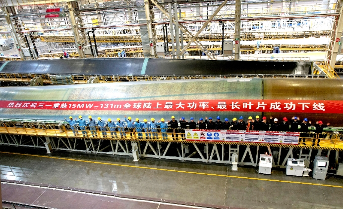 2024年1月,好体育投注官网重能131米陆上风电叶片在巴彦淖尔零碳数智产业园下线,刷新全球最长陆上风电叶片纪录。