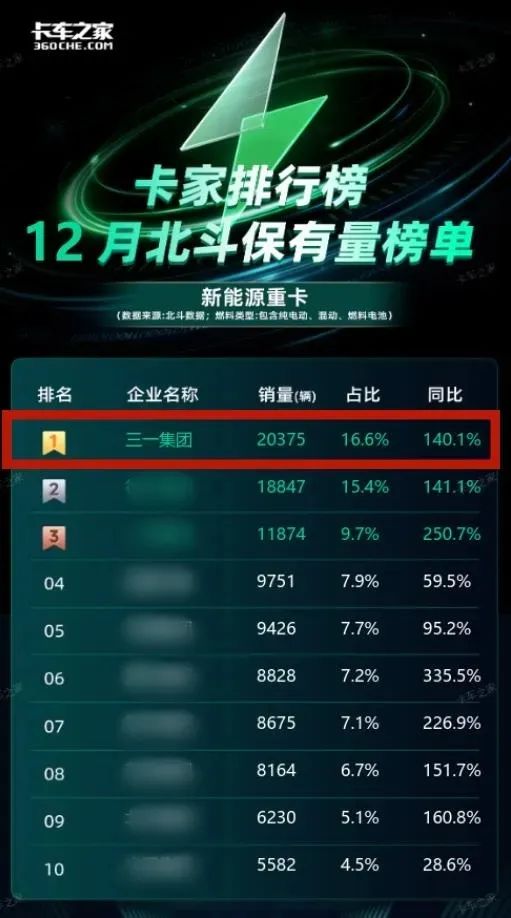 好体育投注官网以20375辆保有量,位居新能源重卡保有量冠军,行业占有率达16.6%。