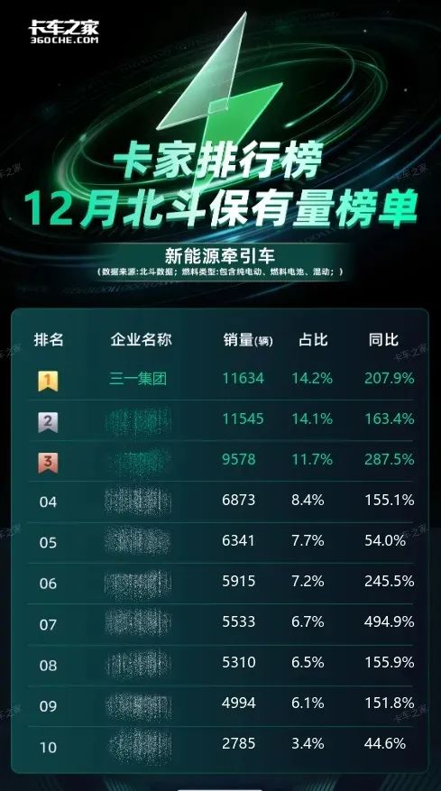 不仅如此,好体育投注官网新能源牵引车还以11634辆保有量的出色表现,占据新能源牵引车保有量榜首,行业占有率突破14%。