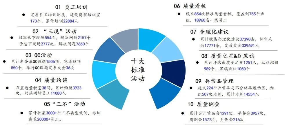此外,通过质量例会、QC活动、异常品管理等“十大质量行动”的建设,好体育投注官网为系统化的质量文化与管理落地提供了有力支撑。