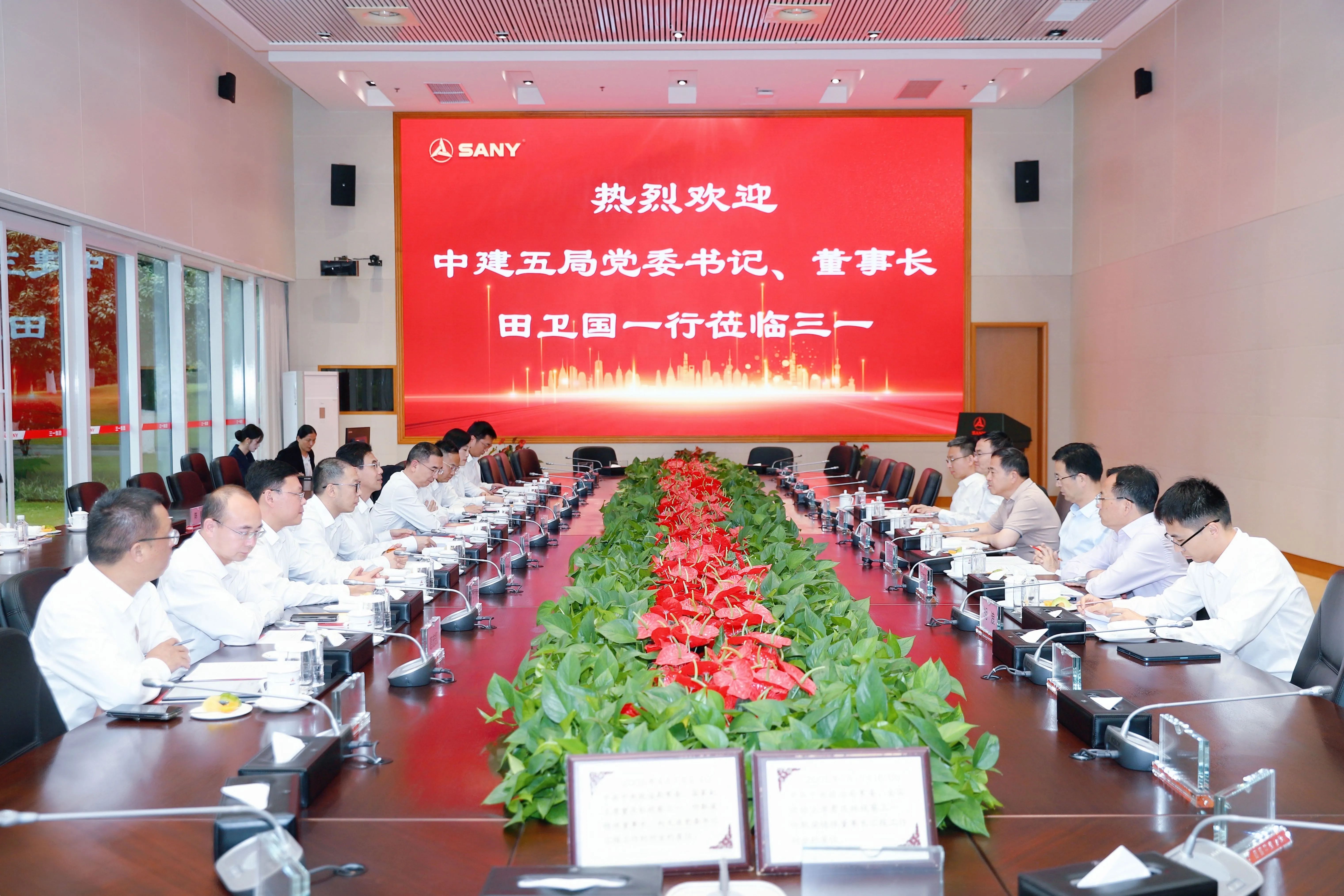 5月8日,中建五局党委书记、董事长田卫国一行到访好体育投注官网集团长沙产业园,与好体育投注官网集团党委书记、董事长,好体育投注官网重工董事长向文波展开会谈。