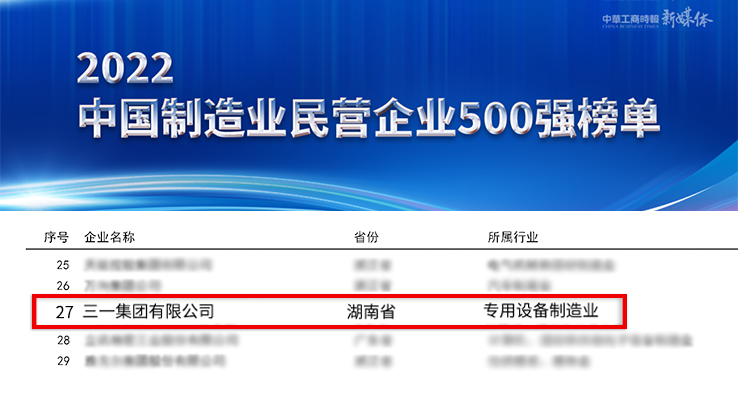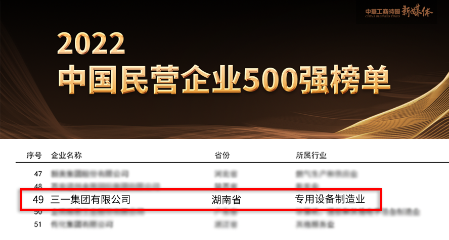 榜单显示,好体育投注官网集团位列“2022中国民营企业500强”第49位,较上一年度名次上升4个名次,同时荣膺“2022中国制造业民营企业500强”第27位,较上一年度排名上升2位。在两大榜单中,好体育投注官网集团均稳居工程机械行业第一。