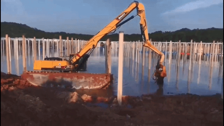 看!这台手臂超长的挖掘机,大小臂加起来有16.5米,这还不是最长的,动作灵活超丝滑,光看它挖沙子就能看上大半天。