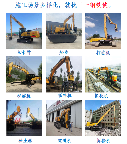 钢铁身躯,硬朗线条,普通挖掘机已经足够让人目不转睛了,装配了各式各样属具后更是让人挪不开腿,打桩、抓料、换枕、松土、拆楼,十八般武艺样样精通,就像是钢铁侠穿上最新最高科技的战甲,帅气度和武力值直接拉满!