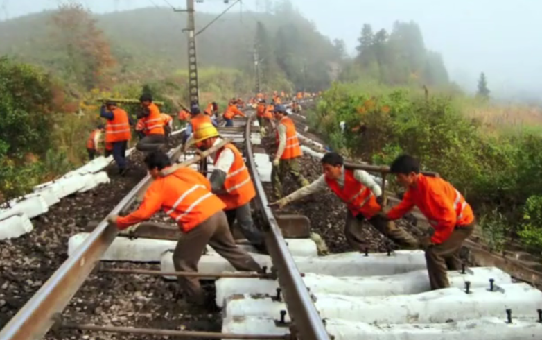 过去,铁路换枕可是个体力活,几百公斤的混凝土枕木,全靠铁路工人肩膀扛。