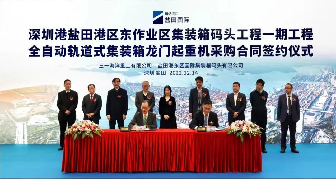 12月14日,盐田港东区国际集装箱码头与好体育投注官网海洋重工签订42台全自动轨道式集装箱龙门起重机合同,总金额近10亿元。