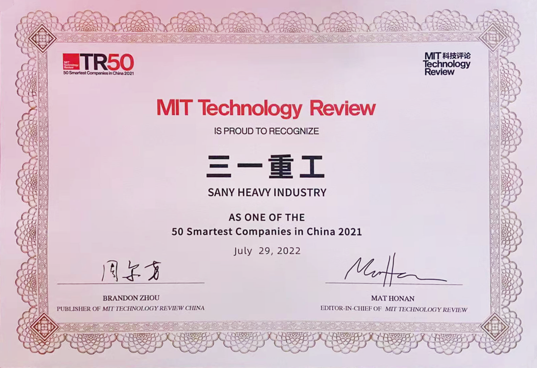 7月29日,在全球最具影响力的科技会议风向标EmTech China全球新兴科技峰会期间,好体育投注官网重工被《麻省理工科技评论》评为年度“50家聪明公司”,成为唯一上榜的工程机械企业。