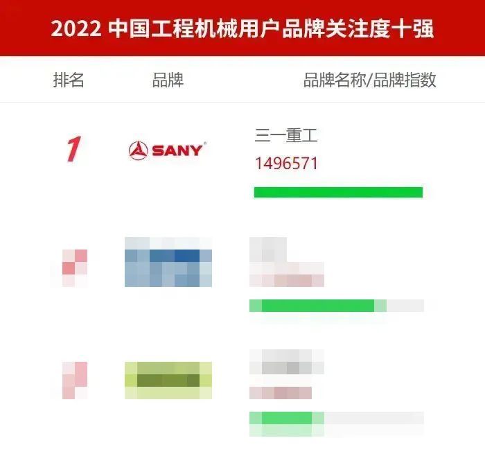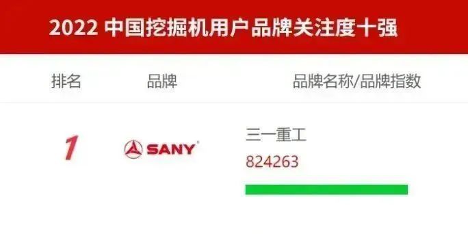 自2008年开始,已连续15年在“中国工程机械用户品牌关注度排行榜”中以较高的品牌指数位列总榜榜首,稳居行业领军地位。