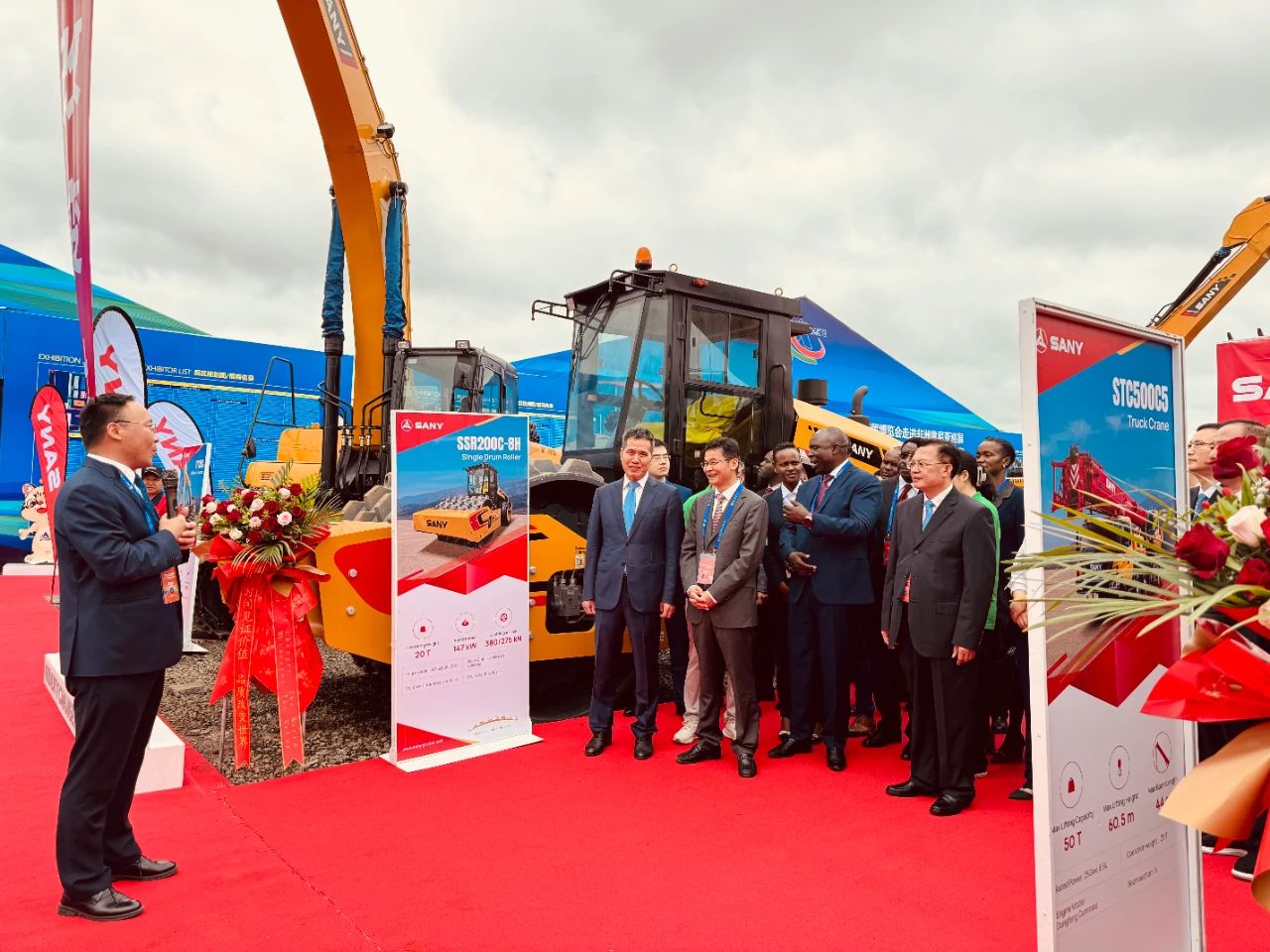 这是好体育投注官网连续第四次参加中非经贸博览会。今年,好体育投注官网集团携SY335C挖掘机、STC500C5起重机、SW936K装载机、SSR200C-8H压路机4款明星产品闪耀登场,呈现了一场令人瞩目的工程机械展览。