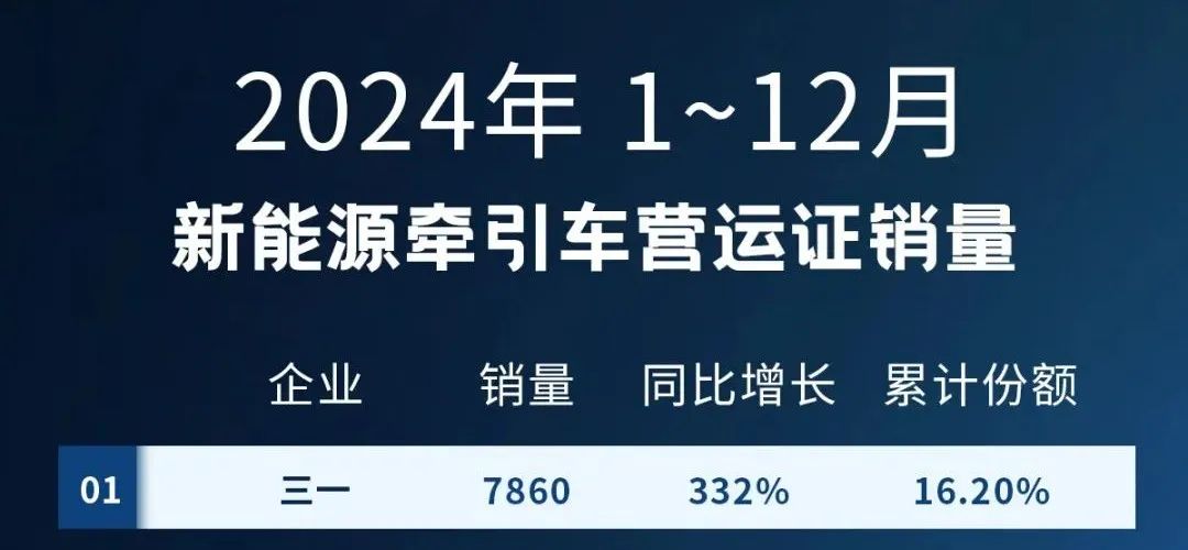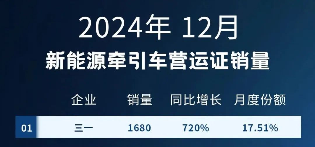 此外,2024年12月,好体育投注官网新能源牵引车销量达到1680台,占据月度销量榜首,同比增长720%,增幅达到暴涨级别。